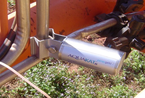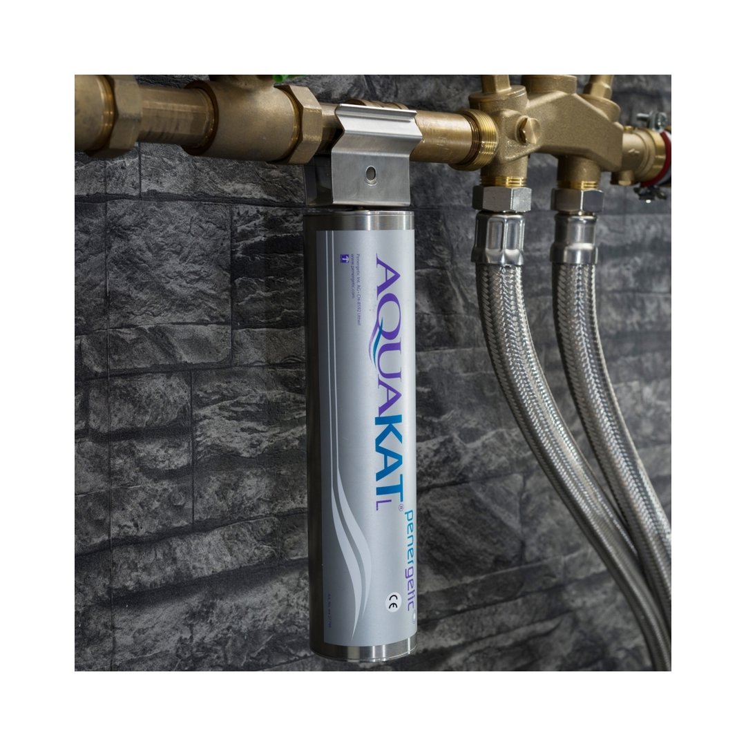 AquaKat es un dispositivo de tratamiento físico del agua (emisor, catalizador) que emite una frecuencia, previamente programada y cargada en el agua, de esta manera el equipo vitaliza el agua que circula por su interior, optimizando la calidad y el sabor.